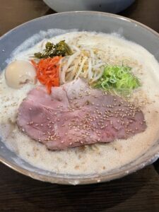 あっさり豚骨といいますか、臭みがなく、ドイツ人にも親しみやすい豚骨ラーメンとなっていて万人ウケがよく美味しいです。個人的なおすすめは赤とんデラックス(19.90€)です。自家製のラー油の程よい辛さと豚骨スープがあって美味しいです。
